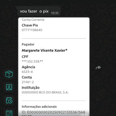 Você faz o pagamento via PIX e envia para nós o comprovante via WhatsApp.